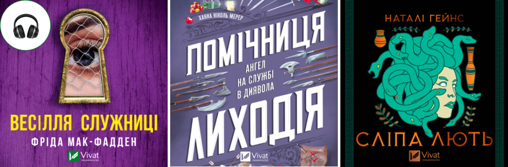 - За найатмосфернішу, на думку пані Олесі, озвучку потрібно згадати збірку коротких історії «Весілля служниці». «Ми залучили трьох дикторок, Вероніку Дорош, Надію Хільську та Вікторію Тишкевич, і кожна привнесла щось своє у короткі історії Фріди Мак-Фадден», — прокоментувала менеджерка Vivat з електронного контенту.