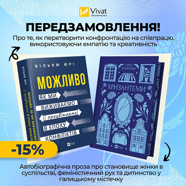 🤝 «Можливо: як ми виживаємо (і процвітаємо) в епоху конфліктів», Вільям Юрі. Автор цієї книги, науковець і співзасновник Гарвардської школи перемовин, використовуючи приклади з життя допомагає зрозуміти природу конфліктів та виробити здатність знаходити консенсус навіть у, здавалося б, безвихідних протистояннях.