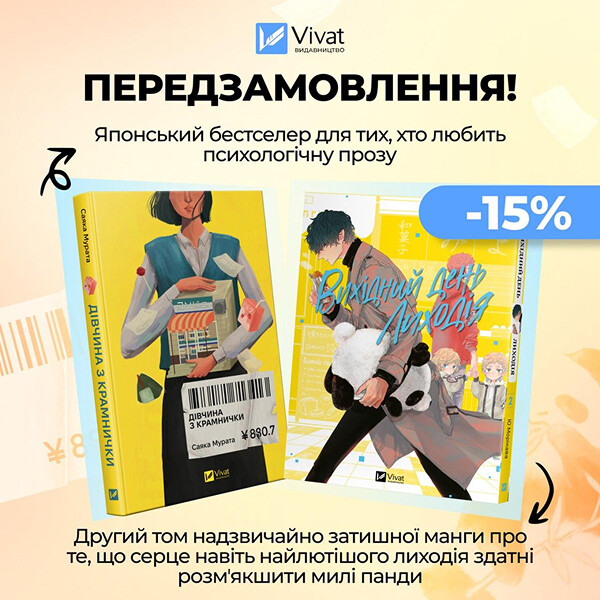 ✍️ «Дівчина з крамнички», Саяка Мурата. Це короткий роман японської письменниці, в якому розповідається про тридцятишестирічну жінку Кейко, яка вже вісімнадцять років працює в невеличкому магазині. Героїня почувається безпечно в цій рутині, але оточуючі вважають, що вона нещасна, бо її життя не відповідає соціальним нормам.