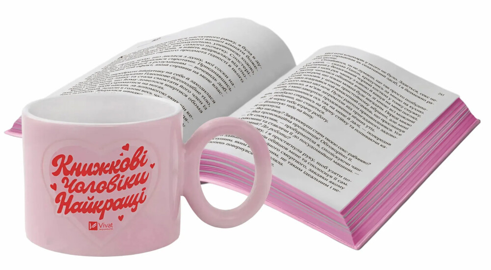 - З айтемів з написом «Книжкові чоловіки найкращі» — горнятко та наліпку на телефон.