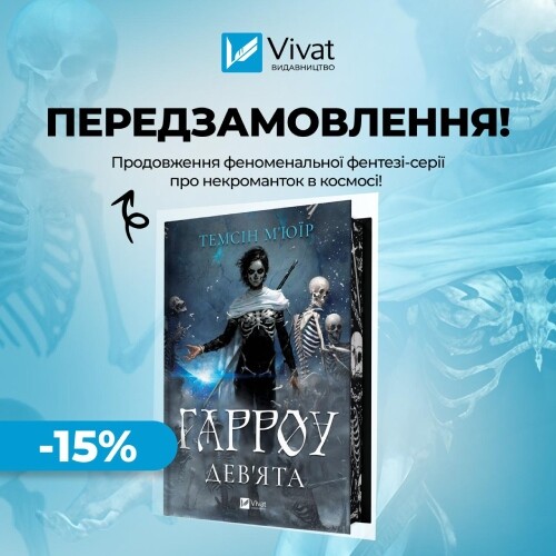 📖 Продовження фантастичного бестселера Темсін М’юїр «Ґідеон Дев’ята» — «Гарроу Девʼята» вже на передзамовленні. Некромантка Гарроугарк Нонаджесімус — лікторка Імператора, що народжена ціною жертви. Їй доводиться боротися не лише з зовнішніми загрозами, а й розібратися у власній свідомості. Події відбуваються на космічній станції Мітренум. Гарроугарк, остання некромантка Дев’ятого Дому, має опанувати кісткову магію та захистити всю галактику, попри виснаження, повсюдну брехню й власні сумніви.