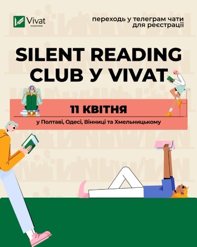 11 квітня тихі читацькі клуби проходитимуть у чотирьох містах: Полтаві, Одесі, Вінниці та Хмельницькому. Долучайтеся до чату свого міста в телеграмі, щоб знайти однодумців, налаштуватися на атмосферу чи дізнатися деталі щодо клубу.
