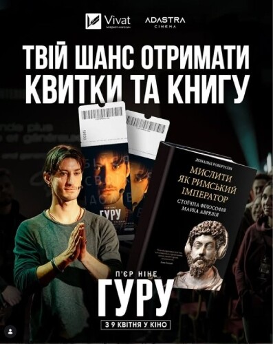 Adastra Cinema з Vivat розігрують квитки та книгу «Мислити як римський імператор» Дональда Робертсона до виходу трилера про коуча з особистісного зростання — «Гуру» — із П’єром Ніне в головній ролі. Фільм розповідає про відомого ментора, який досягає популярності та суспільної любові шляхом маніпуляцій та висловлення оманливих суджень.