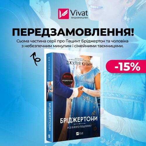 📖 На передзамовленні сьома книга серії «Бріджертони» Джулії Куїнн. Роман «Усе в його поцілунку». У романі йдеться про наймолодшу із сестер родини Бріджертон — Гіацинт. Панна зі гострим інтелектом і впертим характером відхилила вже не одну шлюбну пропозицію, бо не бачить достойного кандидата. Все змінюється після знайомства героїні з Ґаретом Сен-Клером, онуком славнозвісної леді Денбері. Молодик потребує допомоги, щоб розшифрувати щоденник своєї бабусі-італійки і саме Гіацинт володіє італійською. Нарешті героїня зустрічає чоловіка, з яким їй не буде нудно.