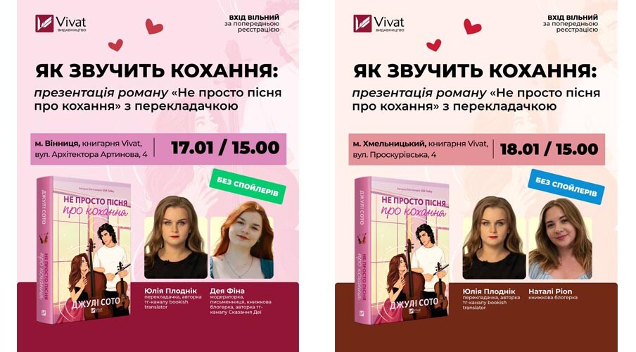 «Як звучить кохання»: презентація роману «Не просто пісня про кохання» у Вінниці, Хмельницькому та Чернівцях