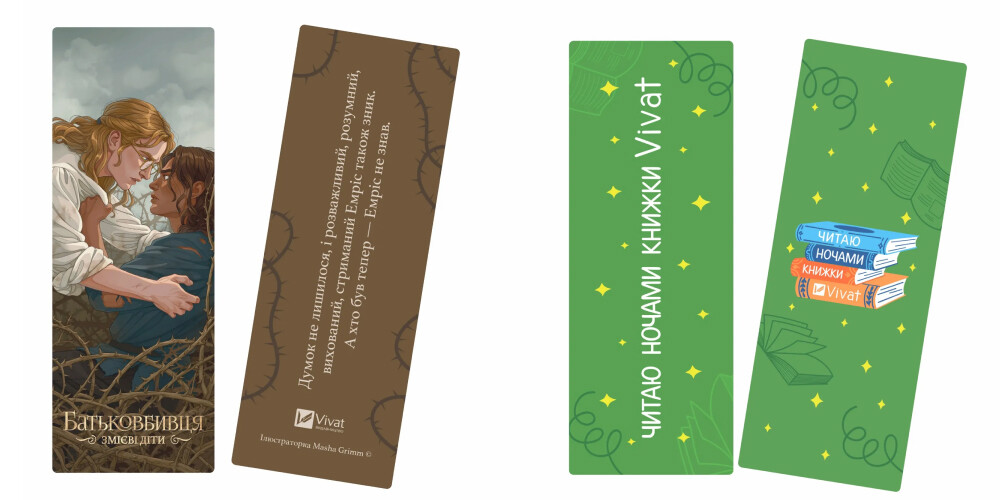 - Закладинкою «Читаю ночами книжки Vivat» — для читачів, які надають перевагу захопливим історіям навіть перед сном.