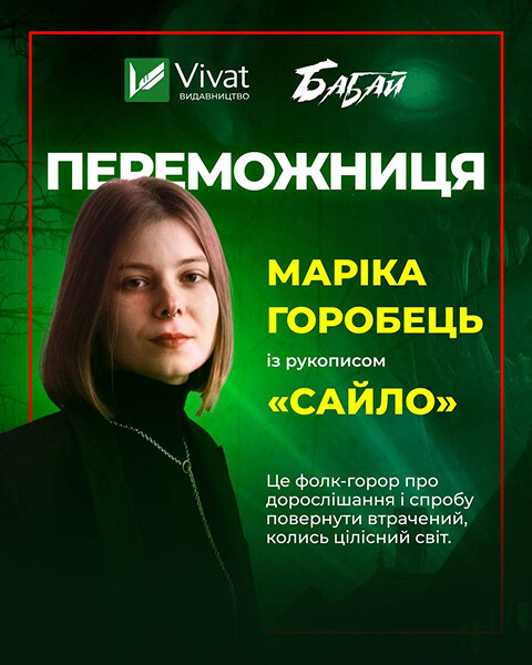 Видавництво Vivat і спільнота «Бабай» оголосили переможницю літературного конкурсу Vivat Shadow Awards. Нею стала Маріка Горобець із рукописом «Сайло».