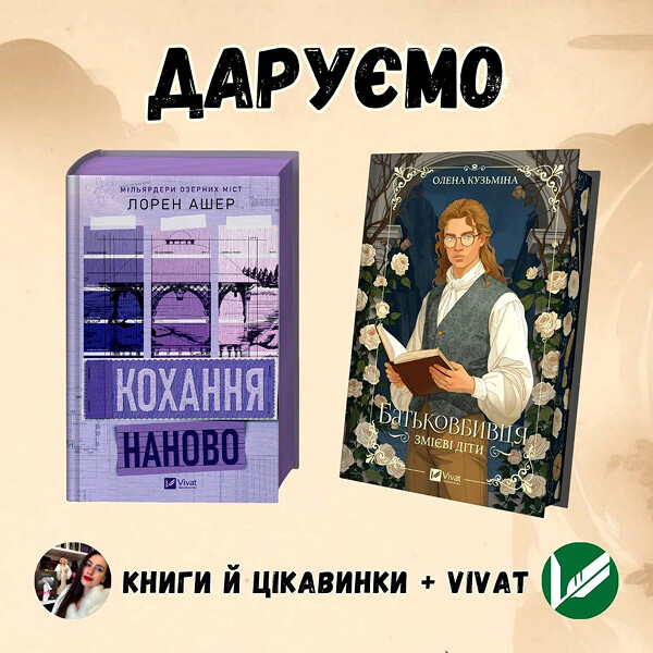 Видавництво Vivat разом з авторським каналом про книги, мистецтво та кіно «КНИГИ й ЦІКАВИНКИ» розігрують в телеграмі дві книги: романи «Батьковбивця» Олени Кузьміної та «Кохання наново» Лорен Ашер.