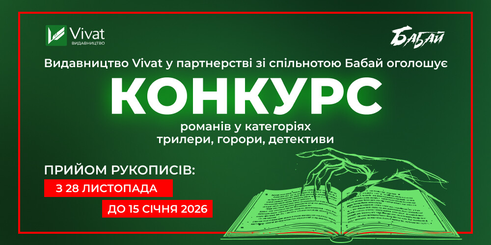 З 28 листопада починається прийом заявок на участь у літературному конкурсі Vivat Shadow Awards. Видавництво Vivat та спільнота «Бабай» запрошують до участі авторів рукописів у жанрах горор, трилер та детектив, які вже завершили тексти своїх творів, та ще ніде їх не публікували.