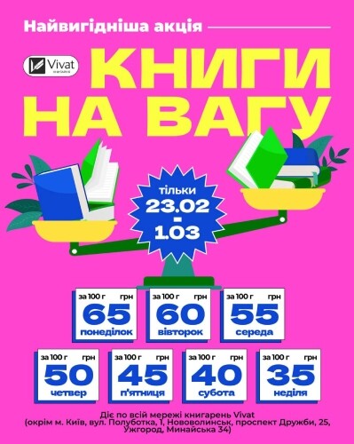 Акція «Книги на вагу» у фізичних книгарнях Vivat