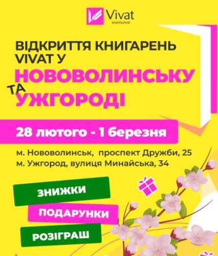 Вже цими вихідними відчиняться двері новеньких книгарень у двох містах: Нововолинську та Ужгороді. З нетерпінням чекаємо на вас: як і завжди, наші гості не залишаться без сюрпризів.