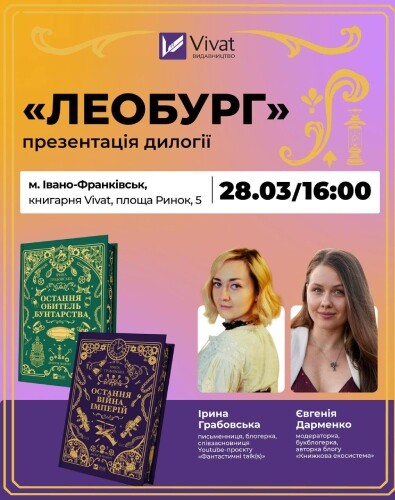 Запрошуємо на презентацію, де поговоримо про дилогію «Леобург» — пригодницьку фантастику з елементами детективу, політики й романтики, де боротьба за свободу може змінити долю цілого світу.