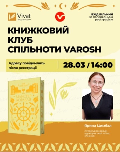 Реєструйтеся на зустріч. Після реєстрації ви отримаєте деталі, як приєднатися до Спільноти Varosh і долучитися до Книжкового клубу.