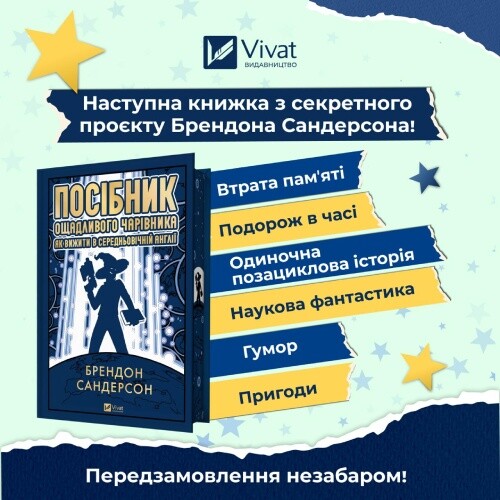 Ексклюзивні новини з телеграм-каналу Vivat: незабаром вийде «Посібник ощадливого чарівника. Як вижити в середньовічній Англії» Брендона Сандерсона українською: