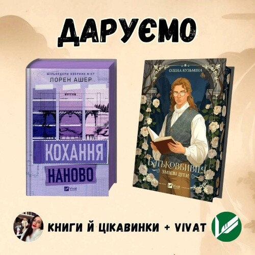 Видавництво Vivat разом з авторським каналом про книги, мистецтво та кіно «КНИГИ й ЦІКАВИНКИ» розігрують в телеграмі дві книги: романи «Батьковбивця» Олени Кузьміної та «Кохання наново» Лорен Ашер.