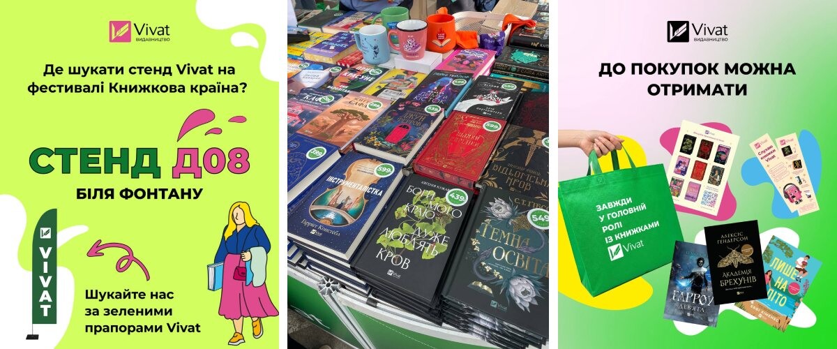 До 26 квітня у Києві на ВДНГ триває фестиваль «Книжкова країна». Ми радіємо зустрічам з вами під час активностей, презентуємо новинки. Для зручності зібрали всі анонси подій Vivat на фестивалі в окремому матеріалі — тут зустрічі з авторами й лідерами думок, презентації, дискусії, лекції, майстер-класи та інші заходи.