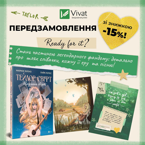 Передзамовляйте «Тейлор Свіфт. Щоденник свіфті» — біографічний нонфікшн про зірку, що стала справжнім феноменом у попкультурі, з лаконічними текстами Маркоса Буено та ілюстраціями Лайї Лопес. Книжка стане ідеальною покупкою чи подарунком для юних прихильника / прихильниці співачки. А також буде цікавою читачам, які хочуть дізнатися більше про Тейлор Свіфт та її фандом.