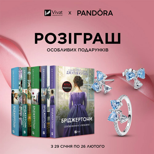 Запрошуємо взяти участь у спільному розіграші і стати діамантом сезону, якому дістанеться повний комплект книг серії «Бріджертони» від видавництва Vivat та 1000 бонусів на покупку прикрас Pandora (1 бонус = 1 гривня).