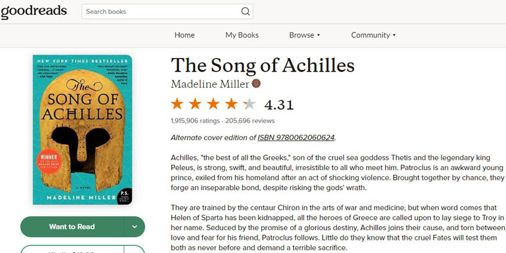 Проникливі та поетичні романи Медлін Міллер натхненні античними міфами. Серед них і «Пісня Ахілла» — книга, у якій авторка виводить на перший план Патрокла, одного з героїв Троянської війни, та веде оповідь від його імені.