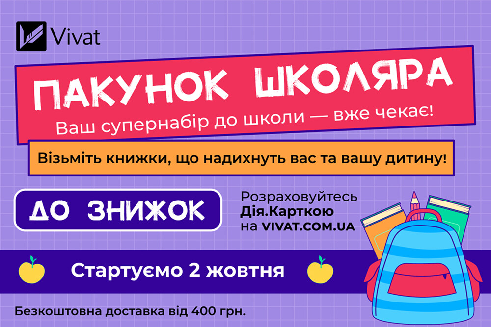 У акційному списку ви знайдете дитячі книжки, з якими навчання буде легшим та цікавішим, а вільний час дитини за читанням — сповненим пригод та веселощів. В інтернет-книгарні Vivat цей перелік доступний в розділі «Акції»; доставка Укрпоштою буде безкоштовною при замовленні від 400 гривень, а «Новою поштою» — при замовленні від 600 грн.