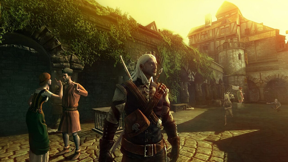 За сюжетом гри The Witcher (2007), Ґеральт втратив памʼять та повернувся до Каер-Морену. Якраз вчасно, бо на фортецю відьмаків нападають та викрадають таємні записи й мутагени. Ґеральт має це все відшукати й паралельно відновити втрачені разом зі спогадами відьмацькі навички та знання під час виконання різних квестів. Також у сюжет додано зустрічі ігрового персонажа із багатьма знайомими з книжок дійовими особами.