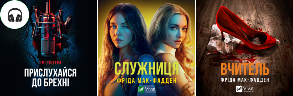 - Книжки королеви сучасного трилера Фріди Мак-Фадден «Ніколи не бреши» та «Служниця», яка, до речі, зараз має суперобкладинку — до екранізації від режисера Пола Фіґа.
