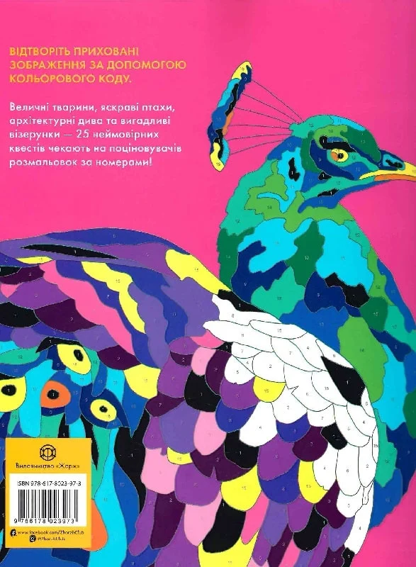 Запрошуємо вас в світ мистецтва та кольору з розмальовкою "Кольоровий код" від Фелісіті Френч та Лорен Фарнсворт. Ця неймовірно захоплююча розмальовка дозволить вам створити власні шедеври, дотримуючись номерів та використовуючи яскраві кольори.