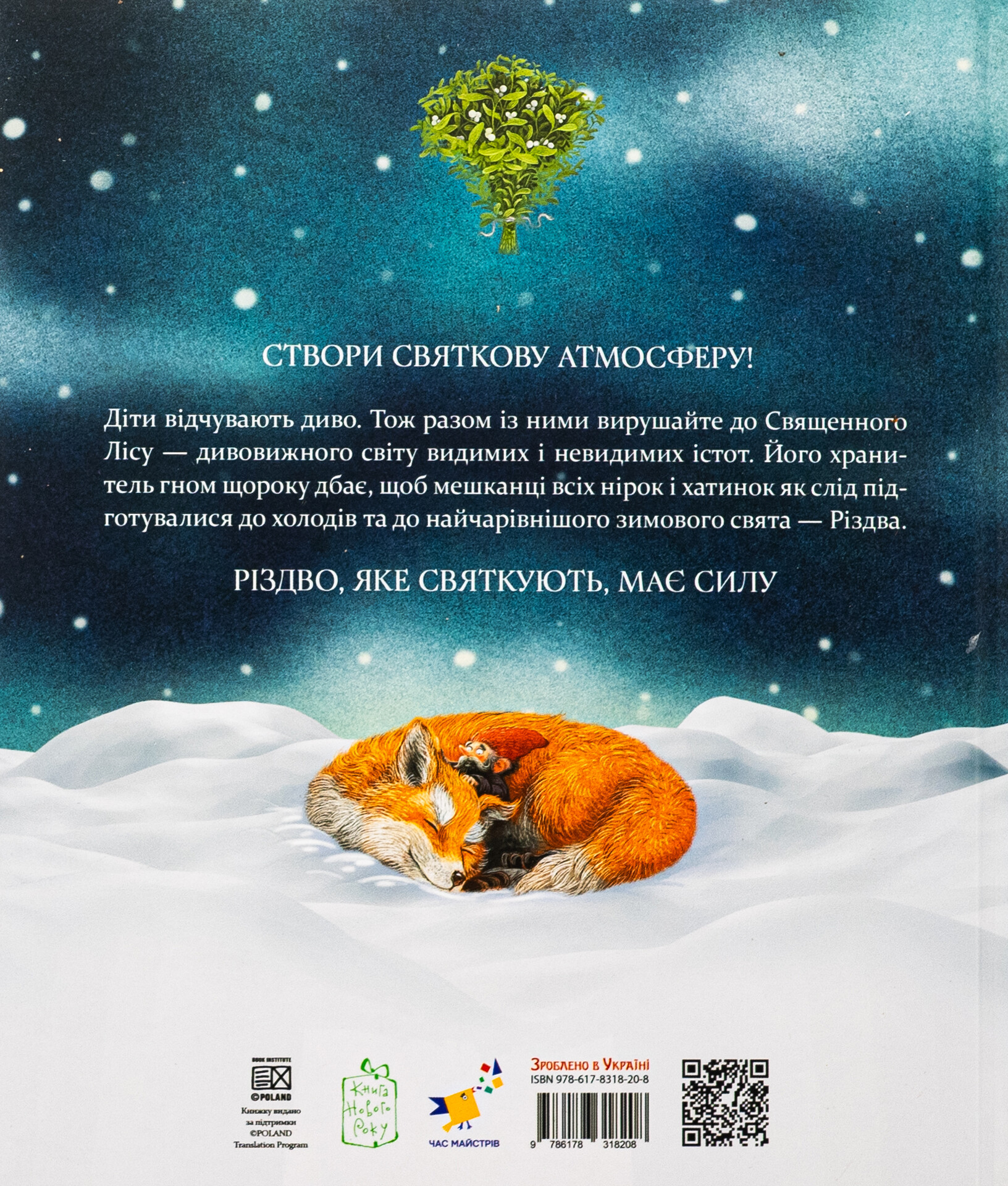 Вони запрошують читачів до осель видимих і невидимих мешканців Священного Лісу та до людського будинку на узліссі, де дорослі й діти, звірі й магічні істоти готуються до найулюбленішого та найчарівнішого зимового свята – Різдва. Ці історії такі добрі й затишні, що зігріють у найлютіший холод, мов тепла ковдра, і додадуть дрібку магії до передсвяткової атмосфери у вашій родині.